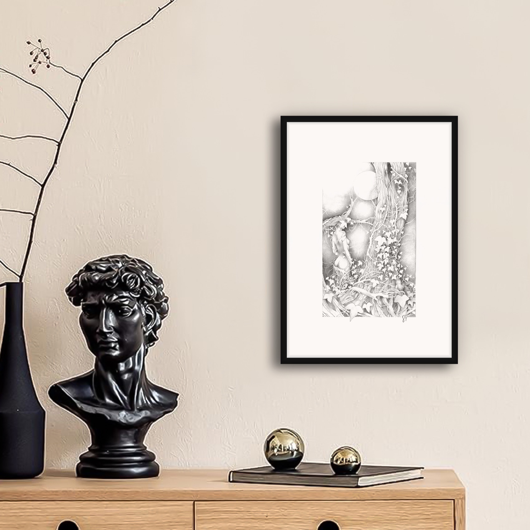 Impression en édition limitée (50 exemplaires) sur papier raffiné Old Mill 300 Gr. Format A3 (29,7 x 42 cm.) L’impression est numérotée et signée par l’artiste. Emballage soigné avec certificat d’authenticité.