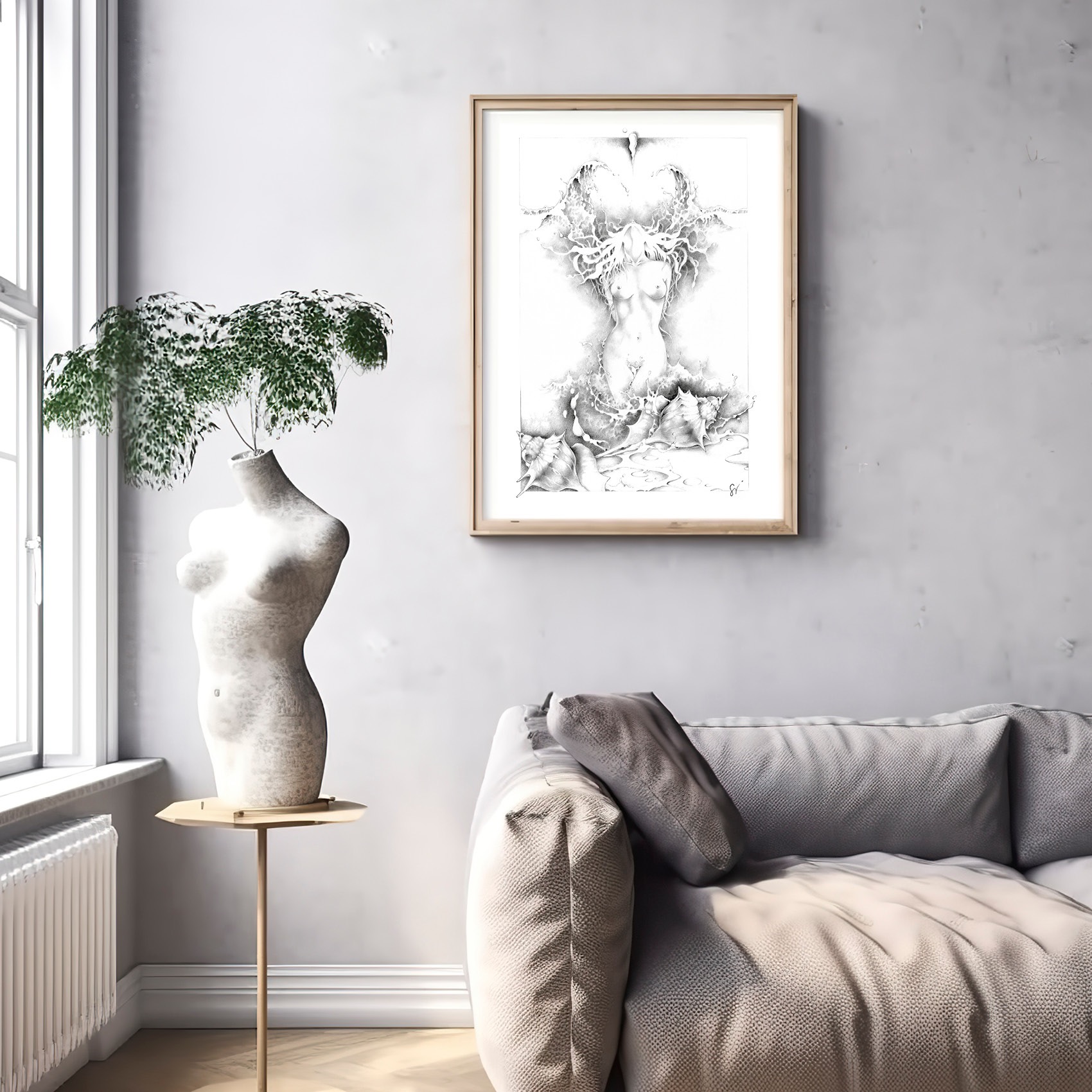 Dessin original de Sylvie Monthulé réalisé à la mine graphite sur beau papier de 250 Gr. Format A3 (29,7 x 42 cm.) Le dessin est soigneusement emballé avec son certificat d’authenticité. Expédition avec assurance, via DHL.